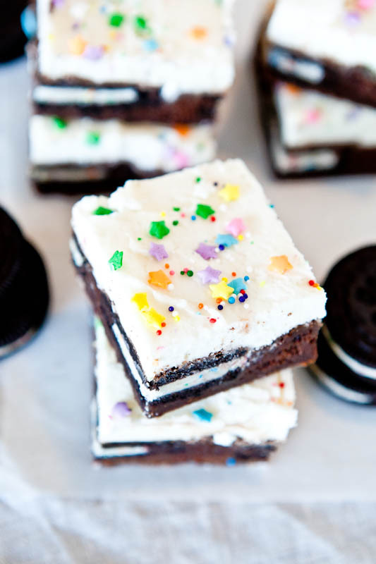 #Oreo, #Cookie-Stuffed, #Brownies, #with, #Vanilla, #Buttercream, #Frosting, #and, #Sprinkles, #Averie, #Cooks